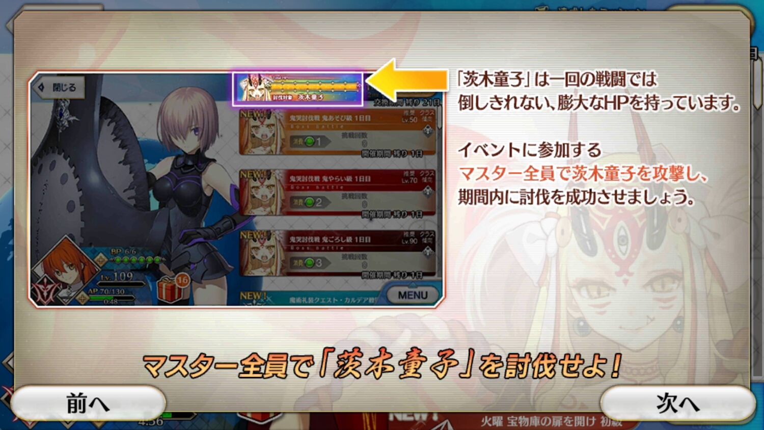 ただし、茨木童子との戦闘にはAPではなく専用のスタミナであるBPを消費する必要があります。