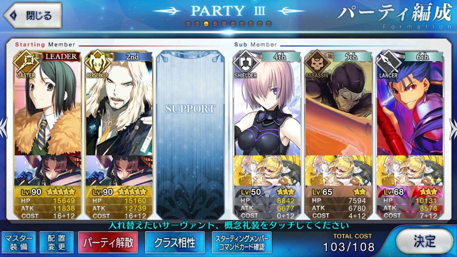 これにフレンドの孔明を追加して、という構成。